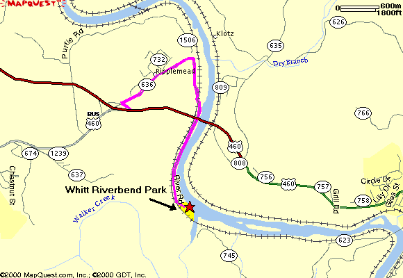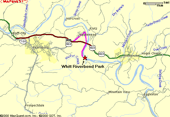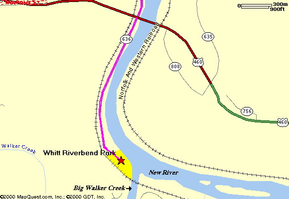 Whitt Riverbend Park is located At the point where Big Walker Creek joins the New River.